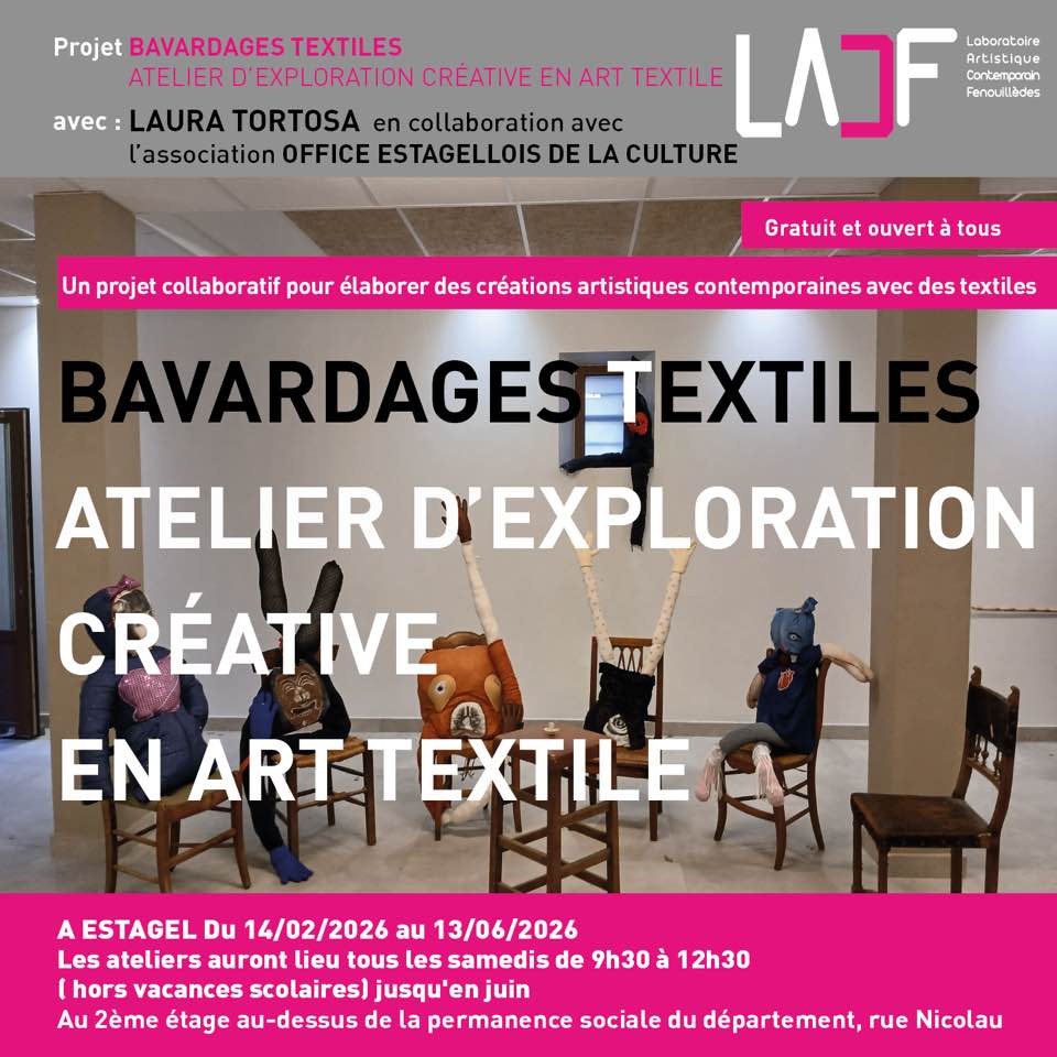 Le Laboratoire Artistique Contemporain en Fenouillèdes s’associe depuis quelques années à l’Office Estagellois de la Culture et au Festival Jours de Théâtre pour décorer des lieux emblématiques du festival, et faire de l’ombre aux festivaliers et festivalières (si si!).